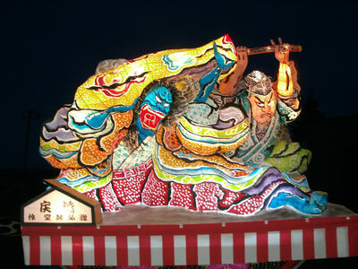 このねぶたは、逃げようとする小鬼(しょうおに)[病魔]を捕らえる場面を再現したものである。