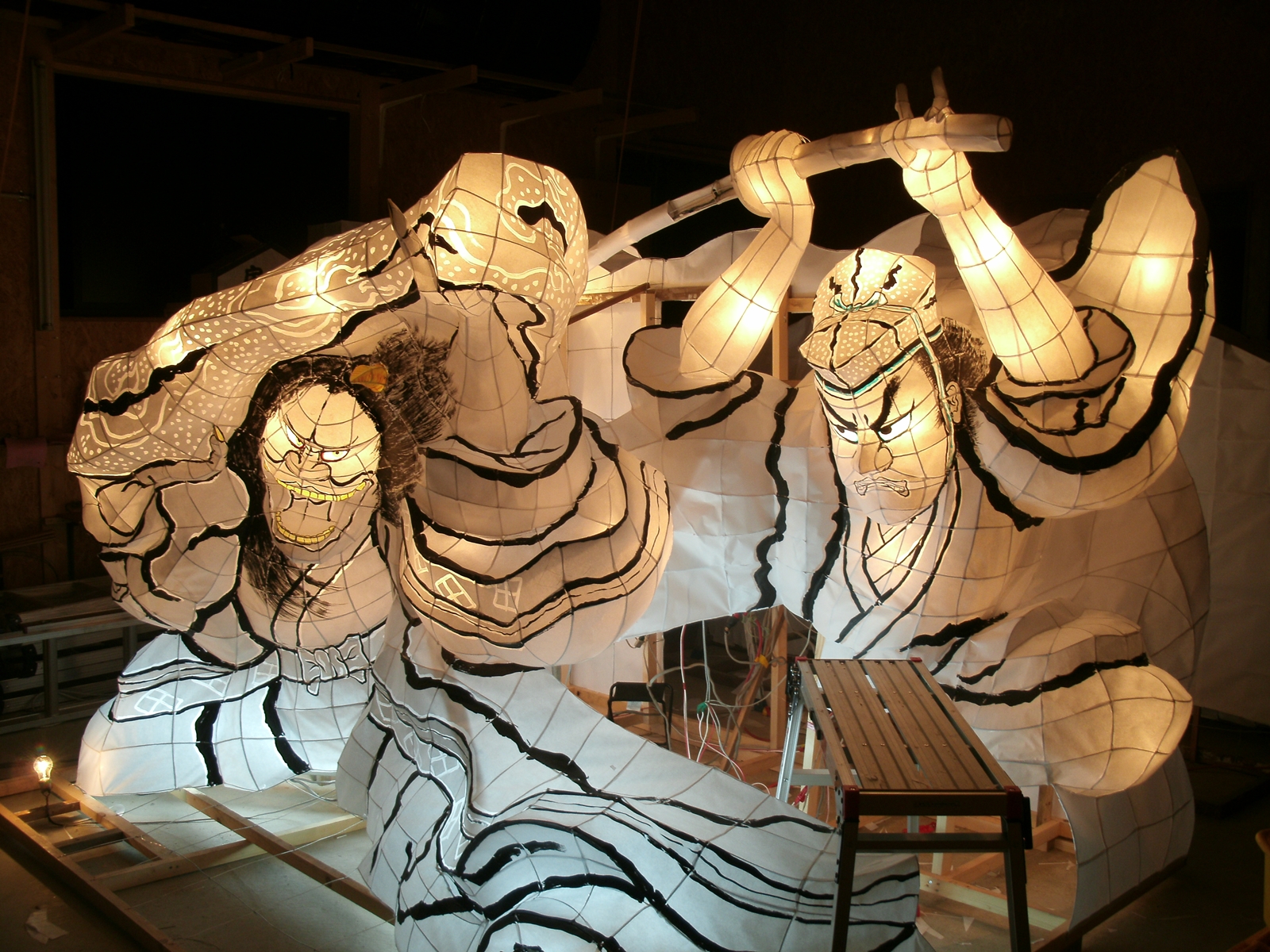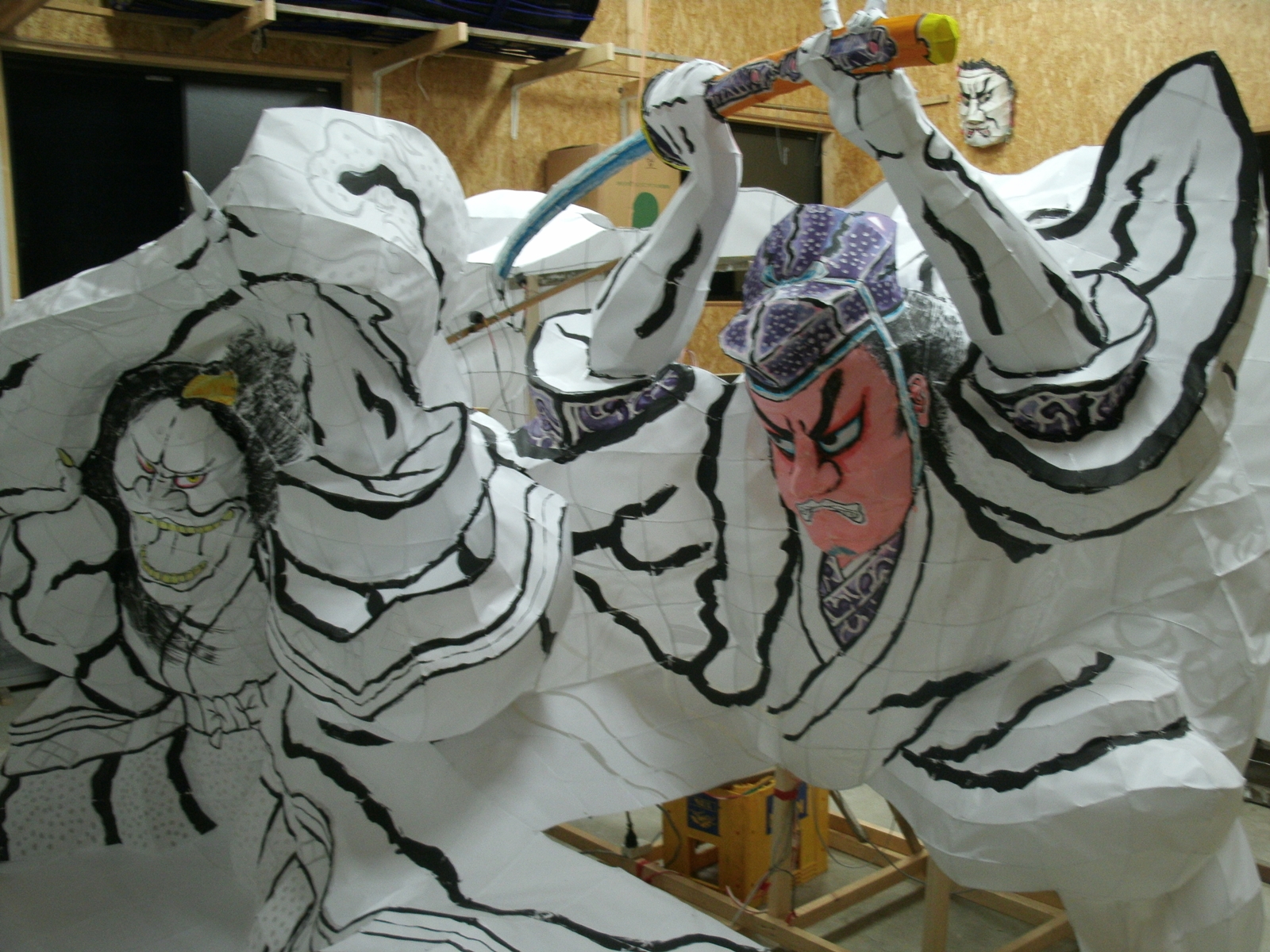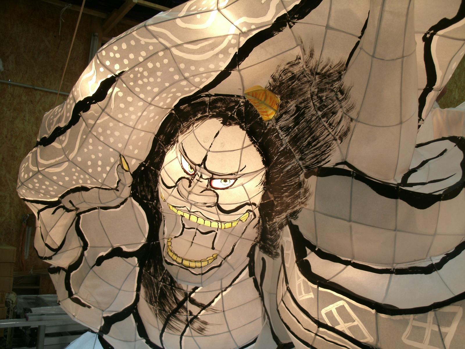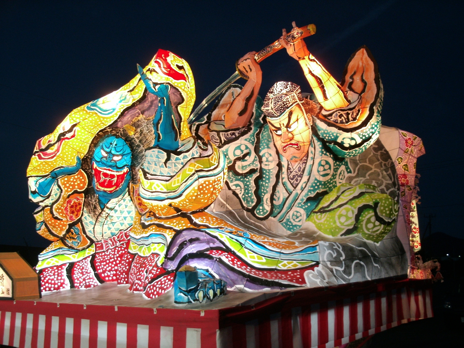 このねぶたは、逃げようとする小鬼(しょうおに)[病魔]を捕らえる場面を再現したものである。