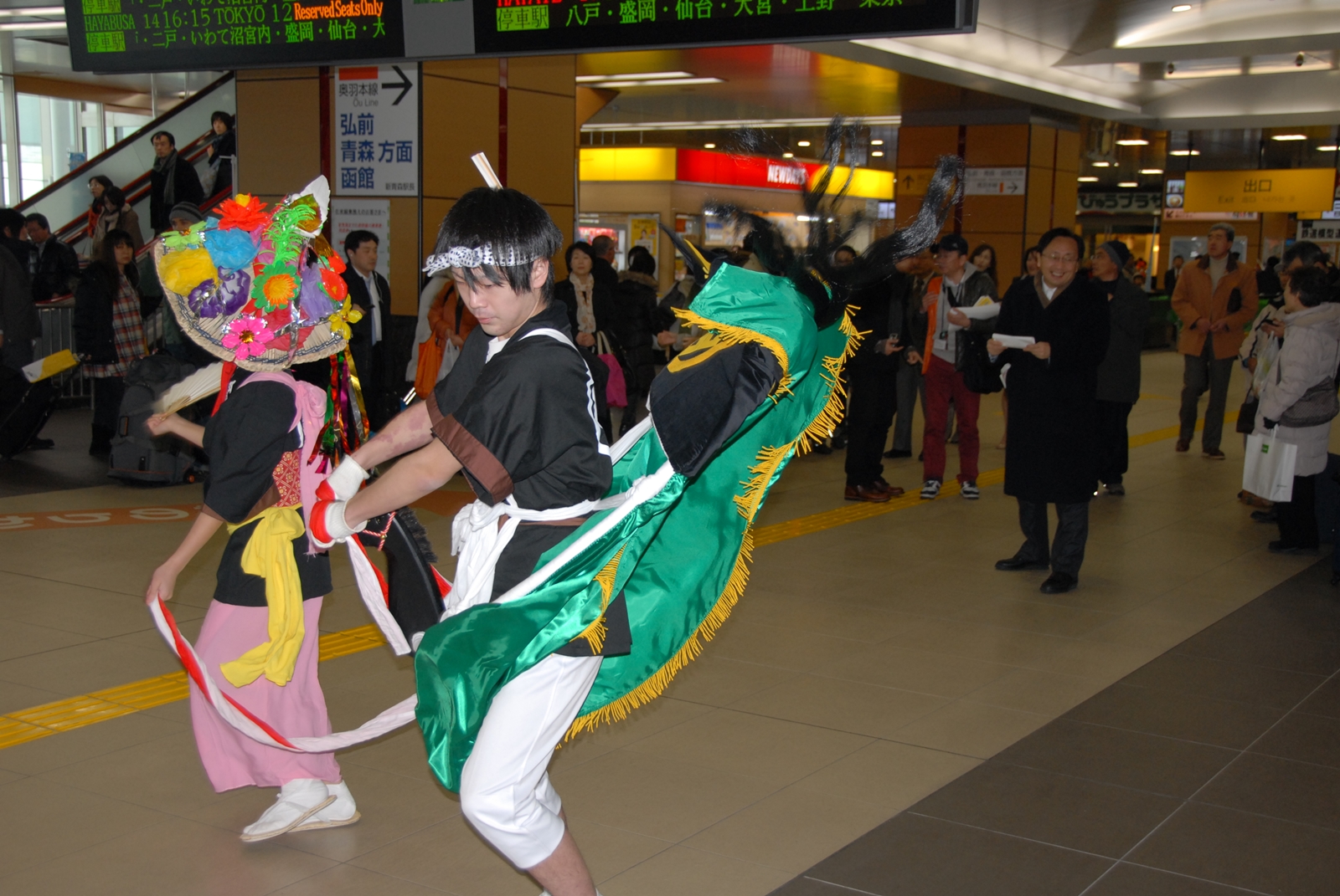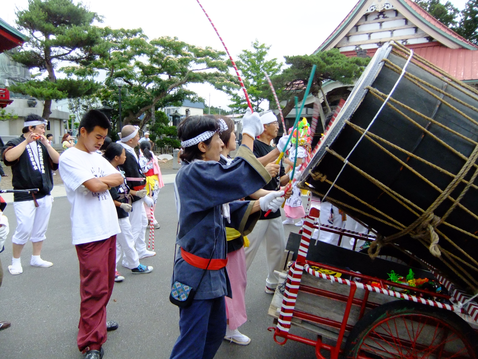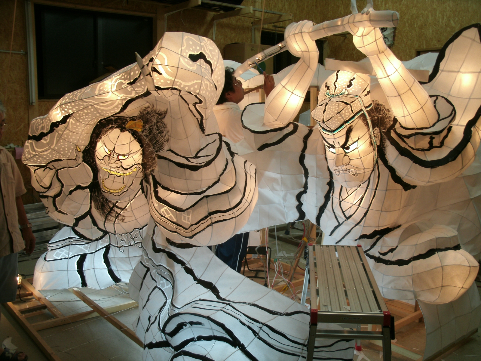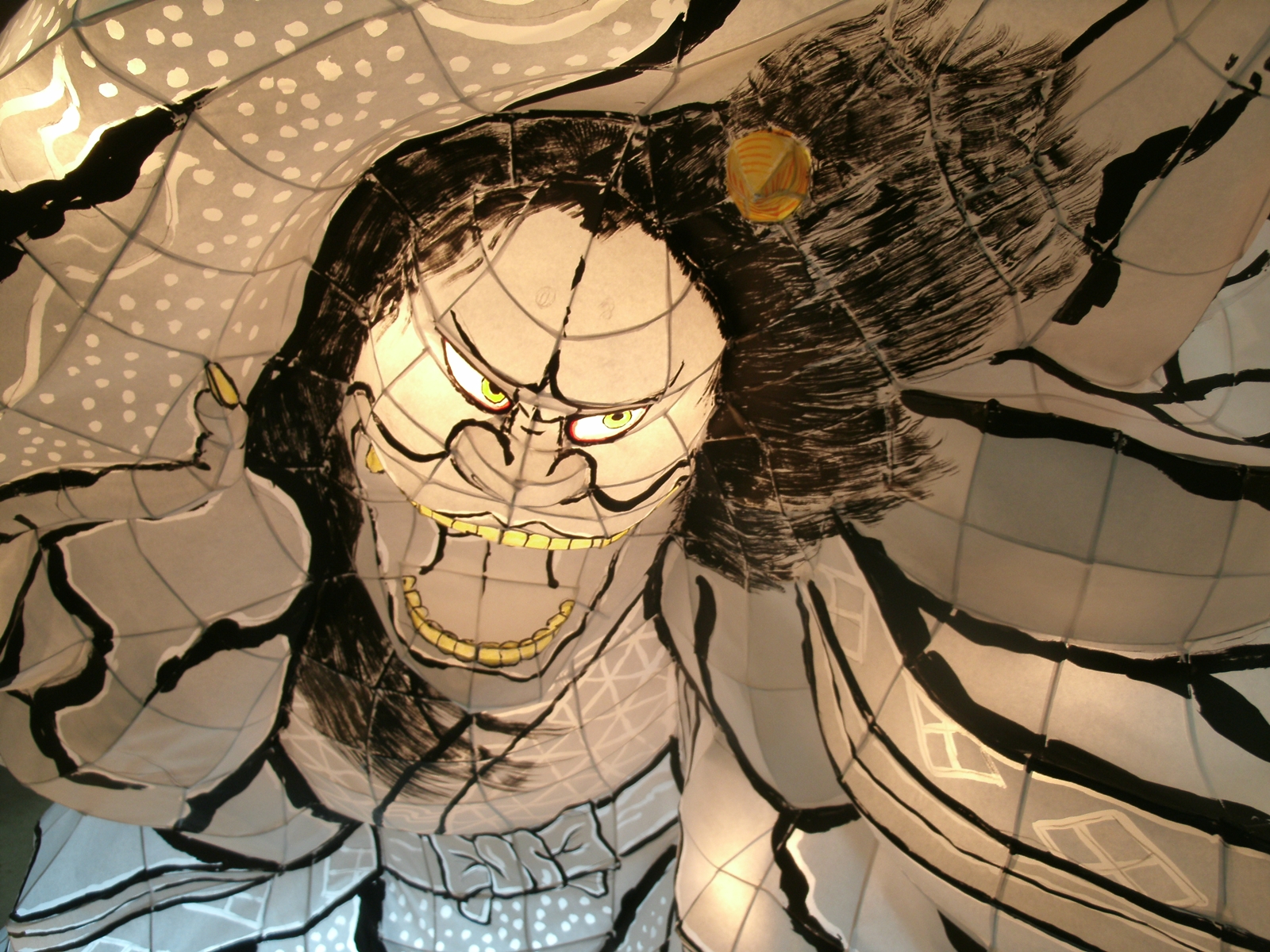 このねぶたは、逃げようとする小鬼(しょうおに)[病魔]を捕らえる場面を再現したものである。