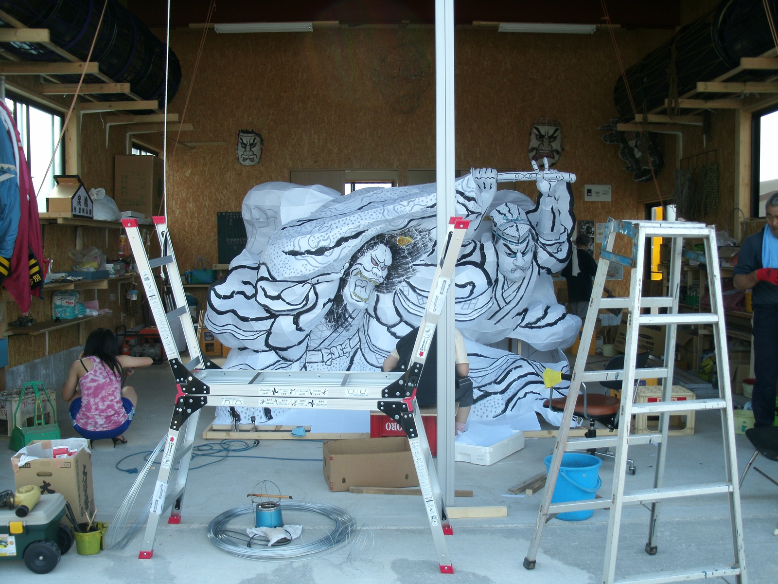 堂端ねぶた師と節三後ろ絵師は先週から本格的に動き出しておりましてく( ̄Д ̄)ノガンバレーーー♪