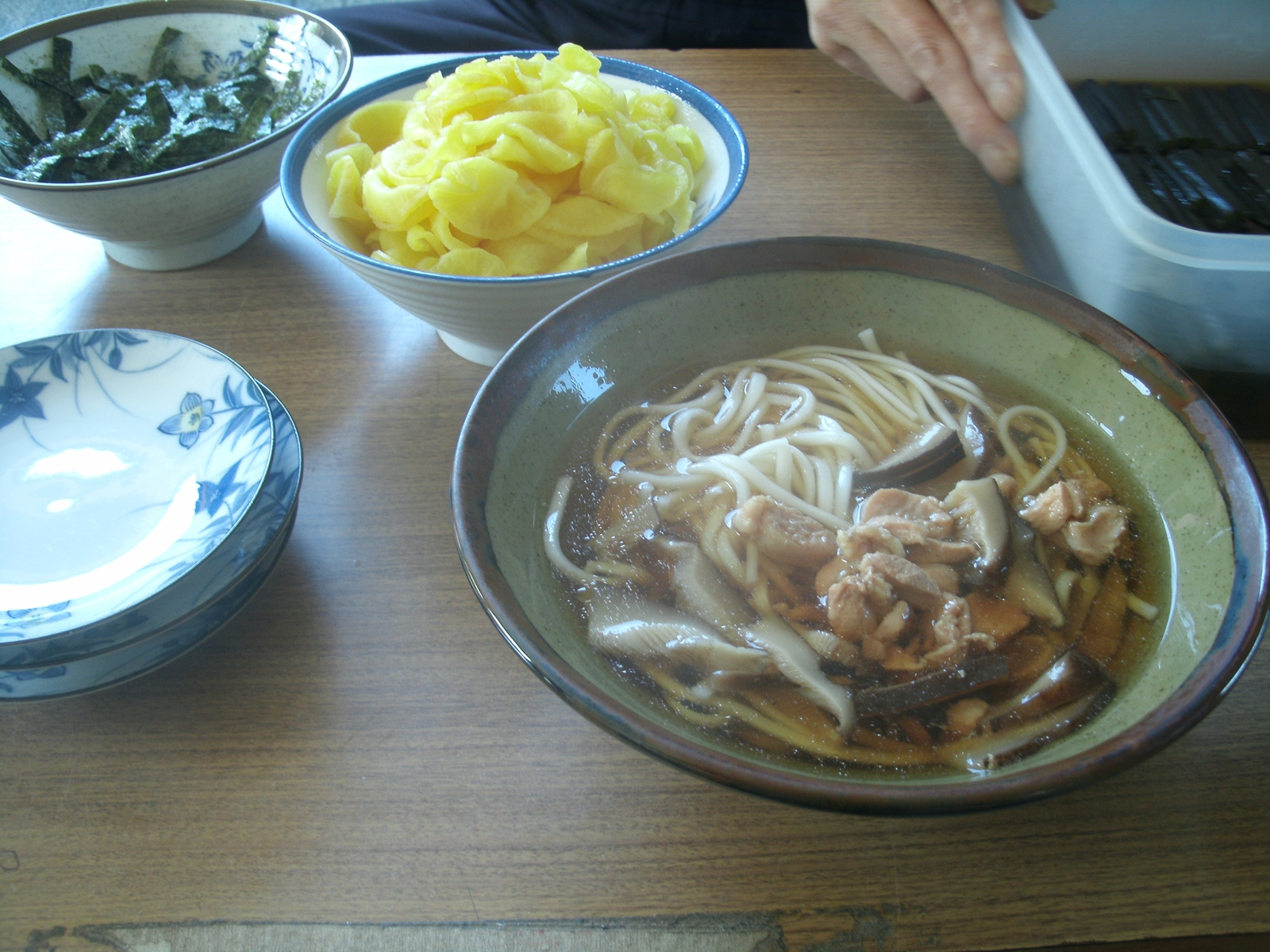 うどんの右上に見える黒いものは、わらびのおひたし的ななにかw